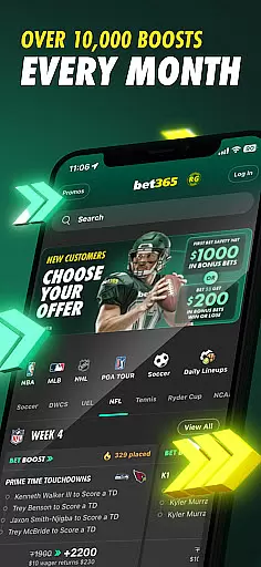 Bet365 is a premier sports betting application that offers an extensive range of betting options across 78 sports, including major leagues like the NFL, NBA, MLB, MLS, NHL, and EPL. The app provides users with a dynamic and engaging betting experience through features such as Live In-Game Betting, Same Game Parlay, and various Bet Boosts.