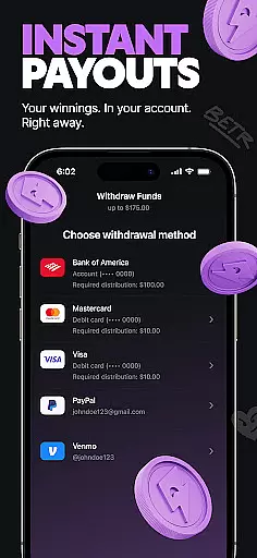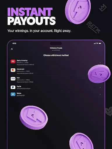 The app's core features include multi-sport coverage across NFL, NBA, MLB, NHL, UFC, and more. Users can enjoy unique offerings like Injury Insurance, Boosted Picks, and Dynamic Payouts that enhance the fantasy sports experience. With seamless payment options through PayPal, Venmo, and others, Betr ensures secure transactions while users focus on sports and winning real money.