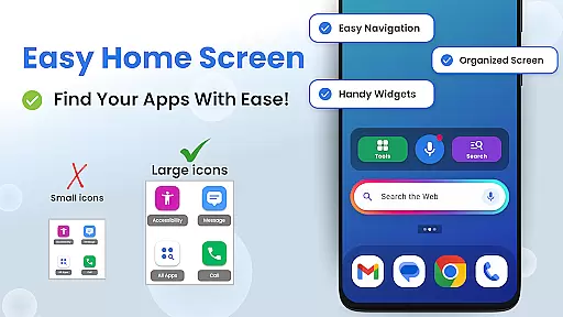 Customize & simplify your home screen: personalized fonts, shortcuts, and icons.