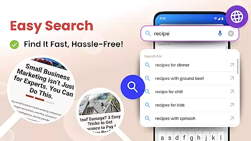 The hands-free voice assistant, powered by Yahoo, enables effortless searching without physical input. This feature is complemented by suggested searches that help users find information more efficiently. Additional practical tools include a calculator and an easy-access search function. The inclusion of a magnifier and flashlight makes reading small print in various environments much simpler, demonstrating the app's commitment to accessibility and user-centric design.