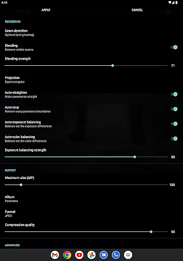 The app's advanced processing options further enhance its functionality. Users can adjust settings like seam detection quality, blending intensity, and auto-exposure balancing to fine-tune their panoramas. For professionals, features like auto-lens calibration compensate for distortions caused by wide-angle or fisheye lenses, ensuring accurate and high-quality outputs. Moreover, the ability to save previews and resume editing later adds convenience to the workflow, allowing users to experiment without losing progress.
