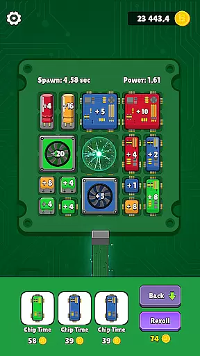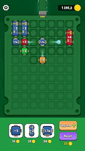 The ability to merge chips introduces a layer of strategy, compelling players to plan their upgrades meticulously to maximize power and income. With various chip types available, players must choose wisely, considering the optimal spots for placement to achieve the best results.
