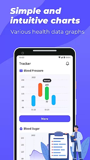 Through intuitive graphs, users can easily track their health metrics and notice trends or patterns. This visual representation makes it simpler to comprehend complex data and encourages continued health monitoring.