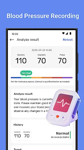 The app allows you to log heart rate, blood pressure, and blood sugar levels, providing a comprehensive overview of your health. With smart trend analysis, users can easily identify patterns and receive tailored advice aimed at improving their well-being.