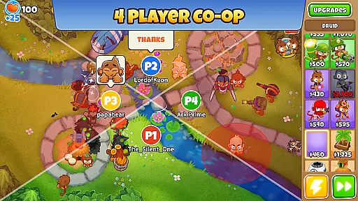 Additional features include 4-Player Co-Op modes, offline play capability, and over 100 Monkey Knowledge meta-upgrades. Powers and Insta Monkeys add extra strategic depth, while regular updates ensure the game remains fresh and challenging. These comprehensive features create an unparalleled tower defense experience.