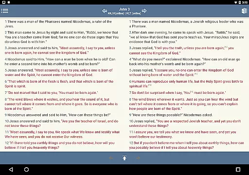 The app's personalized study tools allow users to create notes and organize them into notebooks, tag important verses, and highlight text in multiple colors. Users can customize their reading experience by adjusting font sizes, showing or hiding specific text elements, and viewing Bibles side by side for comparative study.