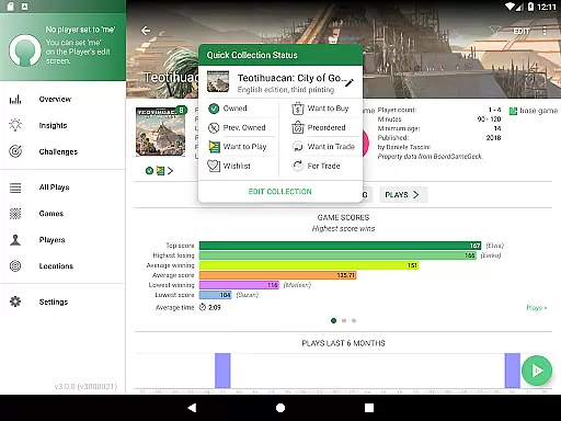 With features like BoardGameGeek (BGG) synchronization, users can seamlessly integrate their existing collections and access detailed statistics about their games. This includes personalized score sheets, play duration tracking, and player comparisons, all of which contribute to a richer understanding of your gaming habits.