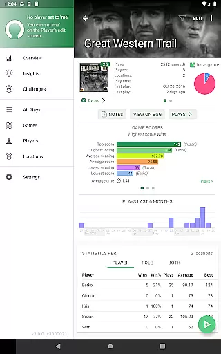 Statistical analysis is another key strength of BG Stats. Users can view detailed breakdowns of game plays, player performance, and time-based insights through various charts and graphs. The Power Expansion adds advanced filtering, role-based statistics, and heat maps, while the Challenges expansion introduces customizable gaming goals. Cloud sync functionality ensures data consistency across devices, making it an essential tool for serious board gamers.
