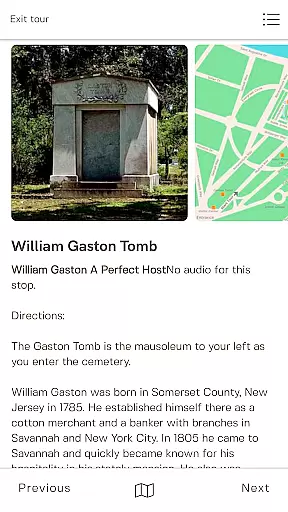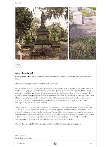 The Bonaventure Cemetery Tour app boasts several standout features that enhance the user experience. Each stop on the tour includes high-quality photographs and engaging narrations, providing an in-depth look at the cemetery's notable residents and their stories. The narration, performed by a local Savannah resident, adds authenticity and depth to the tour.