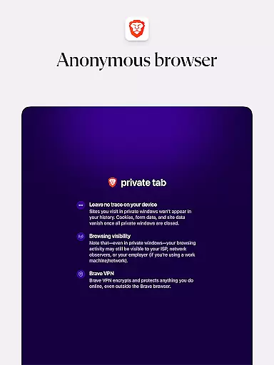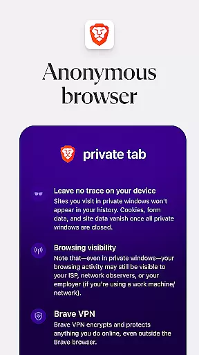 Brave Private Web Browser is a top-tier communication tool that combines privacy, speed, and innovative features to deliver an exceptional browsing experience. As a private web browser with built-in VPN capabilities, it ensures users can browse the internet securely while maintaining their anonymity. The app's AI assistant Brave Leo provides intelligent support, while its ad-blocking technology and tracking protection keep your online activities private.