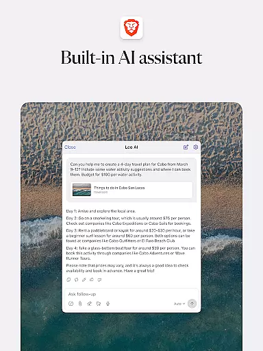 Brave Private Web Browser stands out through its diverse range of advanced features tailored for privacy-conscious users. One of its core strengths is the integrated Firewall + VPN functionality, which allows users to mask their IP addresses and encrypt their internet traffic, ensuring secure communications across untrusted networks. Additionally, the inclusion of Brave Leo, an AI-powered assistant, adds a layer of convenience by helping users find information, translate languages, and perform various tasks without compromising their privacy.