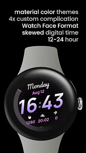 With its support for Watch Face Format 2, including flavors, backwards-rotate italic font for readability, and dual battery support, this app provides comprehensive coverage of lifestyle categories. Users can enjoy unique features like handwritten day of the week display, two-style ambient mode, and material color themes which are rarely found in conventional watch faces.