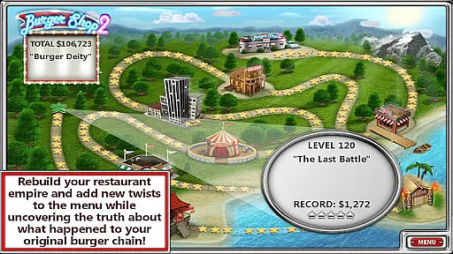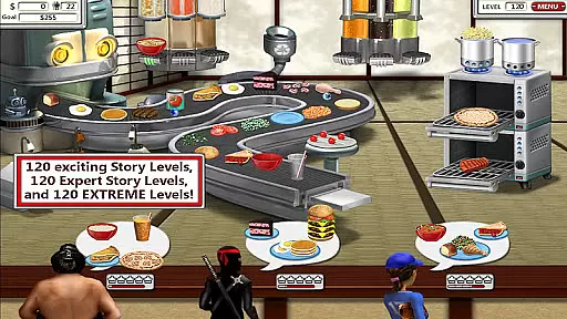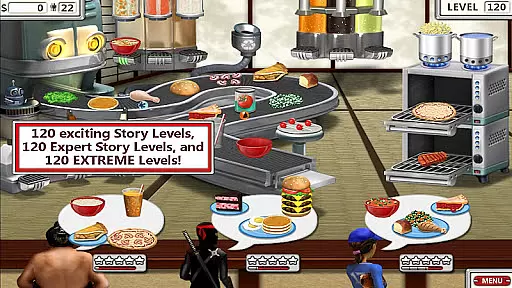 Burger Shop 2 Deluxe boasts an impressive array of features designed to captivate casual gamers. The game includes 120 Story Levels and 120 Expert Levels, offering extensive content for players who enjoy story-driven challenges or skill-based tests.