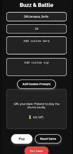 This flexibility extends beyond just timing. The option to add custom dares means that no two sessions feel the same, offering infinite possibilities within each play session. Whether you're squeezing in a quick game or settling in for an evening of entertainment, Buzz and Battle delivers consistent fun.