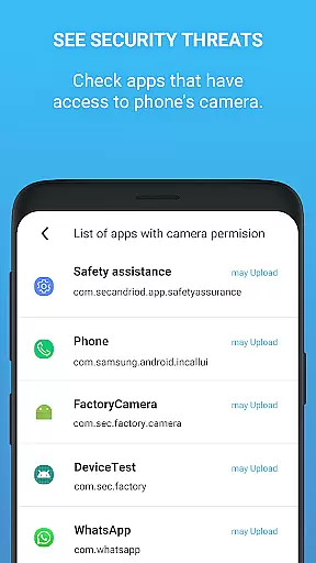 The core feature allows users to disable camera access with a single click, ensuring that malicious apps cannot secretly record or watch you. Additionally, the app monitors and notifies you about which apps have camera permissions, giving you control over your privacy settings.
