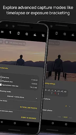 Camera FV-5 boasts a comprehensive set of features that cater to both amateur and professional photographers. One of its standout features is the ability to manually control all photographic parameters, providing users with the flexibility to adjust settings like exposure time, aperture, and stops display in real-time. The app's DSLR-like viewfinder allows users to see these adjustments instantly, ensuring precise control over every shot. Additionally, the built-in intervalometer and exposure bracketing capabilities enable the creation of stunning timelapses and HDR images, expanding creative possibilities.