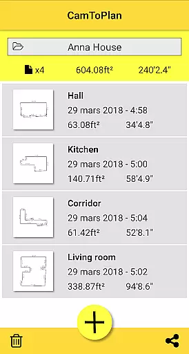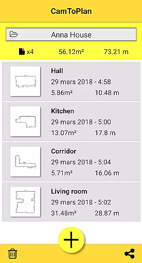 CamToPlan is a revolutionary business application that leverages augmented reality to measure distances and surfaces, as well as draw plans with ease. Using your device's camera, it simulates a 3D tape measure on your screen, allowing effortless measurement of baseboards, walls, furniture dimensions, and more without the need to kneel or manually mark points. The app caters especially to professionals like architects and decorators, offering precise calculations of areas in square meters or feet and enabling instant sharing of room plans via email, message, or social media.