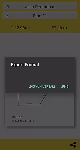 CamToPlan revolutionizes collaborative work in the field of architecture and interior design by enabling effortless sharing of measurements and plans. The app allows users to export data in PNG or DXF formats, which are widely used in professional settings.