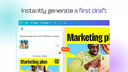 Canva boasts an impressive array of features designed to enhance creativity and productivity. One standout feature is the AI art generator, which transforms textual descriptions into visual designs. This tool is complemented by robust photo editing capabilities, including brightness, contrast, and saturation adjustments, along with Auto Focus for sharpening subjects and blurring backgrounds.