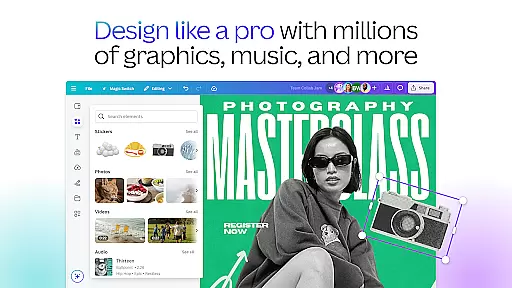 With features such as the AI art generator, photo editor, and video maker, Canva supports designing Facebook posts, Instagram layouts, banners, professional invitations, and resumes. Its AI editing capabilities include cropping, flipping, background erasing, and adjusting photo properties. The video editor allows for professional video production with cloud storage and collaboration features.