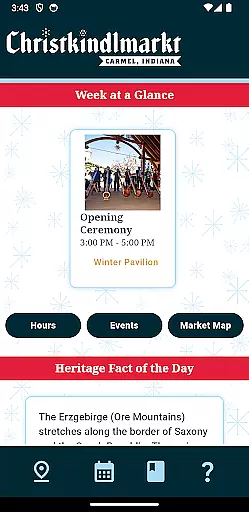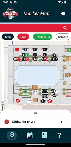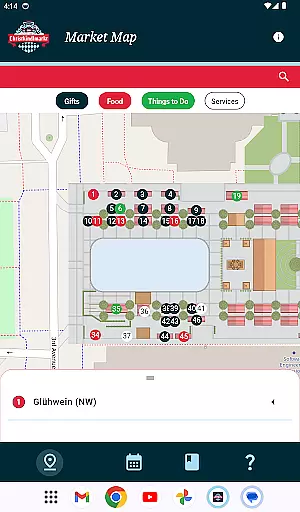 This app boasts several features designed to enhance your Carmel Christkindlmarkt experience. The interactive map allows users to easily navigate through dozens of vendor gift huts, ensuring you never miss out on your favorite items. Whether you're sipping warm Glühwein or enjoying a Raclette sandwich, the map helps you find exactly what you're craving.