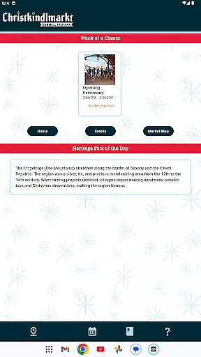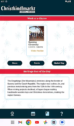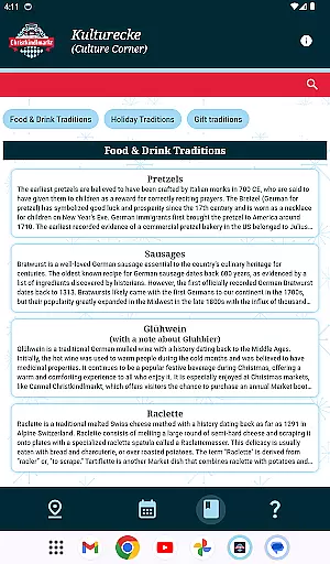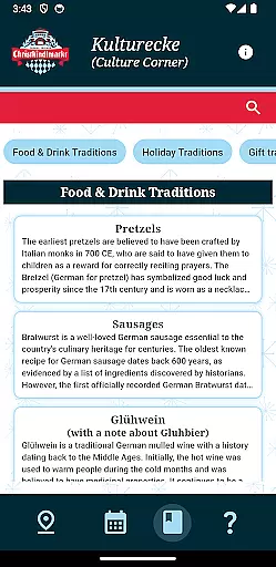 The app provides a detailed schedule of events, helping you plan your visit based on your interests. You'll also find special articles about German traditions, offering insight into the culture that permeates every aspect of this nonprofit organization. From traditional food and drinks to handcrafted gifts, the market offers something for everyone, making it a must-visit holiday tradition.