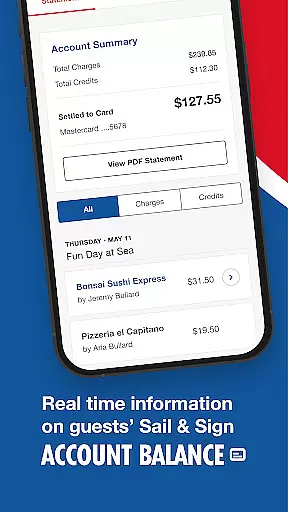 Users can view dining menus and make purchases without needing onboard internet, thus avoiding unexpected charges. Additionally, real-time updates on guests' Sail & Sign shipboard account balance allow for better budget management throughout the cruise.