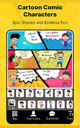 This app is ideal for those interested in comics, storytelling, or education. It offers an intuitive interface where users can choose characters with different emotions, add suitable backgrounds, and insert dialogue through speech bubbles. Whether creating content for personal enjoyment or professional use, Cartoon Comic Strip Maker helps bring imagination to life.