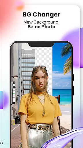 Beyond static adjustments, the app enables dynamic changes through its powerful editing suite. Features like Background Changer and Crop allow precise control over composition, while Adjust & Overlay functions add depth and texture to your creations.