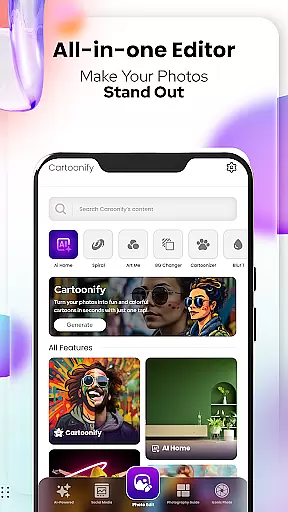 From the Cartoonify feature that ingeniously transforms any image into a cartoon-style portrait, to the Art Me function which applies stunning art styles for a unique touch, this app ensures you have everything needed to create masterpieces. The inclusion of specialized tools like Pet Cartoonizer and Sketching further expands your creative possibilities.
