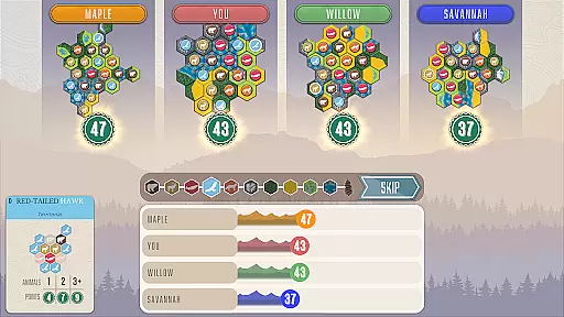 The Family Mode simplifies scoring objectives, making it more accessible for casual players and families. Meanwhile, competitive players can enjoy online matches against others worldwide. The intuitive pass-and-play functionality allows local multiplayer without needing an internet connection. With beautiful visuals and authentic sound design, Cascadia successfully translates the tactile pleasure of a physical board game into an immersive digital experience.