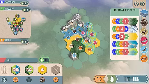 Cascadia Digital is a strategic board game app that brings the award-winning Spiel des Jahres winner to your mobile device. The game focuses on tile-laying mechanics, where players build habitats and create the most harmonious ecosystem possible. Set in the picturesque Pacific Northwest, Cascadia invites you to embark on a breathtaking journey through diverse landscapes while discovering local wildlife.
