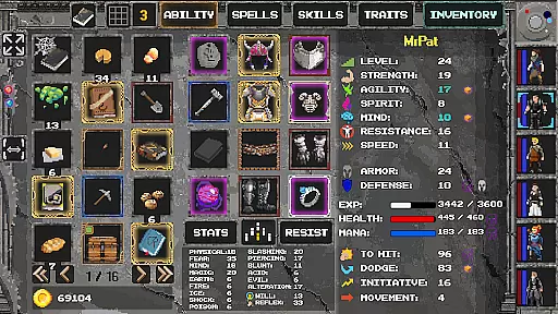 With over 65 spells, 65 abilities, and 65 traits available, the game offers extensive options for tailoring each character's skill set. This vast array allows players to experiment with different combinations, crafting unique strategies for tactical combat scenarios.