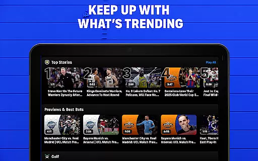 The app provides personalized sports news and video highlights tailored to user preferences. With easy-to-use navigation menus and clearly labeled sections, users can quickly find information about their favorite teams, leagues, and athletes. This streamlined approach enhances the overall user experience by reducing complexity and making content discovery straightforward.