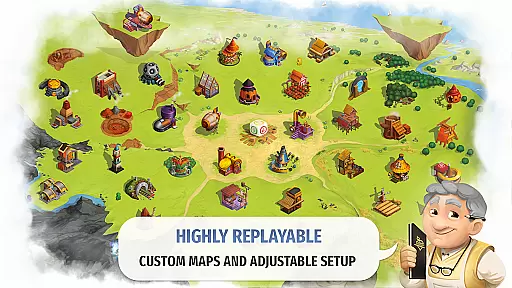 The game offers both single-player and multiplayer modes, including online cross-platform play and hot-seat local multiplayer. It includes AI opponents with adjustable difficulty levels and provides a full 12-game campaign. Players can save maps at any time, enjoy pre-set or randomly generated maps, and experience beautifully animated visuals by renowned artists. Charterstone ensures high replayability as no two campaigns will be the same, making it an engaging digital platform for board game enthusiasts.
