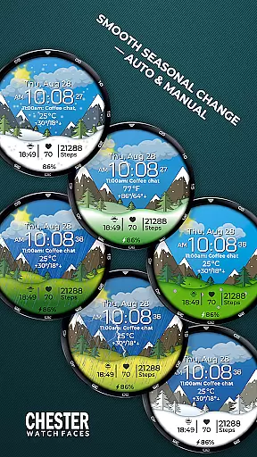 For devices running on Wear OS API 30+, Chester Seasons ensures compatibility and optimal performance, making it a reliable choice for enhancing your smartwatch's functionality and appearance.