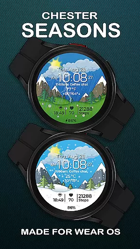 Chester Seasons is a dynamic and stylish watch face for Wear OS devices, designed to bring both functionality and aesthetic appeal to your smartwatch. This app stands out with its rich customization options, interactive features, and beautiful seasonal animations.