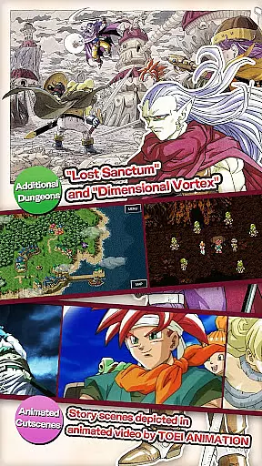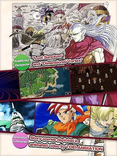 The game also includes remastered graphics and sound, supervised by composer Yasunori Mitsuda, ensuring an immersive atmosphere. Additionally, autosave functionality has been added, allowing progress to be saved automatically while traversing the map. With these enhancements, along with new dungeons like the 'Dimensional Vortex' and 'Lost Sanctum', CHRONO TRIGGER offers a polished and engaging role-playing experience.