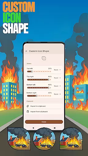 City On Fire Home App distinguishes itself through innovative personalization features. Users can access unique game-style wallpapers inspired by the City On Fire game, adding distinctive visual themes to their home screens. The app provides custom icon shapes, allowing users to personalize their device's appearance with various icon styles.