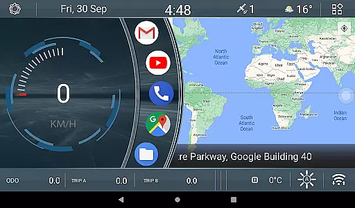 The theme incorporates three distinct working screens that support seamless navigation through simple swipe gestures. When using full-screen map view, users can still navigate through a convenient bottom bar interface. The three customizable odometer widgets offer flexible speed tracking options, allowing drivers to monitor their driving performance across different time frames.