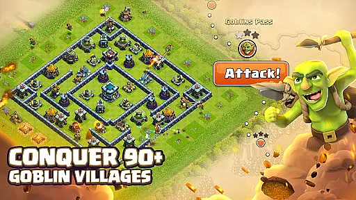 The game offers diverse gameplay elements including competitive Clan War Leagues, cooperative Clan Games, and single-player campaigns against Goblin Kings. With various defensive structures and customizable battle strategies, it provides endless strategic possibilities.