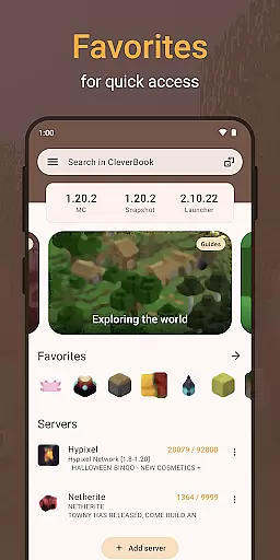 Ideal for both casual players and dedicated fans, CleverBook Pro offers detailed information on every block and item, mobs, biomes, enchantments, potions, redstone circuits, commands, advancements, and more. The app also includes search functionality, server lists, latest news, and an optional dark theme, making it an indispensable tool for enhancing gameplay.