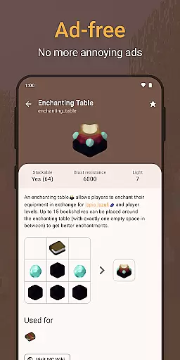 In addition to these pro features, CleverBook Pro removes all advertisements, ensuring a seamless and distraction-free environment. Users can explore extensive databases covering everything from basic items to complex redstone circuits, all while enjoying the benefits of enhanced usability and up-to-date game information.