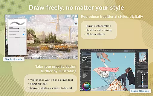 Moreover, the app provides advanced capabilities such as vector painting, which allows artists to scale up their work without losing qualityu2014a crucial feature when working on high-resolution projects or printing artwork. The inclusion of 28 layer effects further enhances the ability to refine and touch up creations with precision.