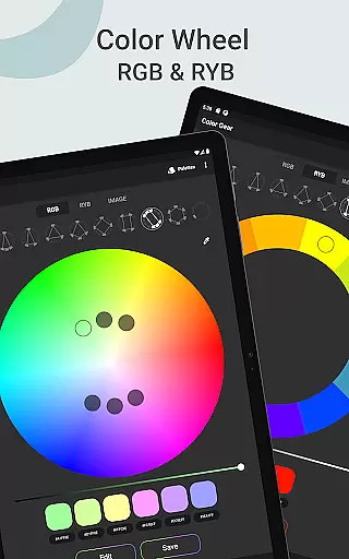 In the realm of digital art and design, having a comprehensive set of creative tools is essential for bringing visions to life. Color Gear stands out by offering an extensive suite of features that cater to both novice and professional designers. The app includes two distinct color models - RGB and Itten Color Wheels - allowing users to work within the digital or traditional art space with ease.