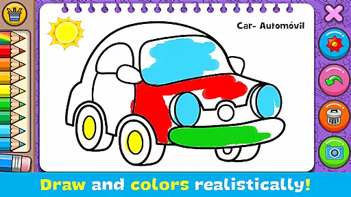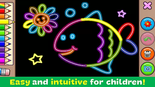 Users can decorate their artwork with over 100 stickers and utilize functions like undo, clear all, and eraser. The app supports saving drawings in an album for future editing or sharing via social media platforms. Its simple and intuitive design ensures ease of use for children, while the dynamic color effects add an element of fun and surprise.