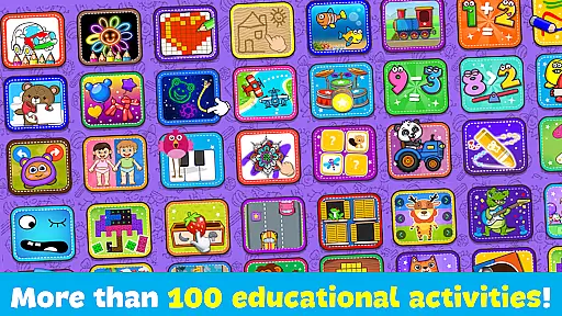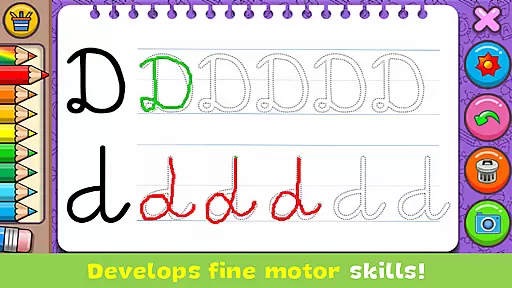 The app helps users learn the alphabet, numbers, geometric figures, animals, and more. With additional activities like playing drums, popping balloons, and pixel art, it enhances concentration and fine motor skills. Users can save their creations, share them on social media, and enjoy the simple, intuitive design tailored for children.