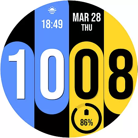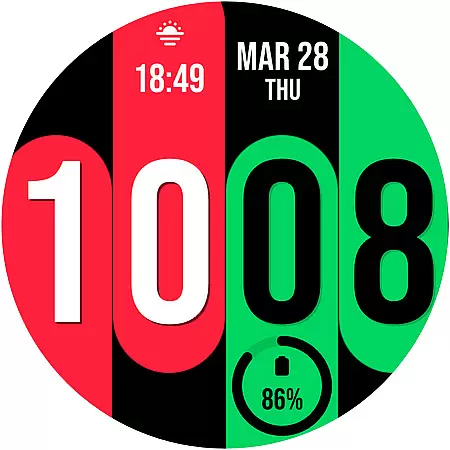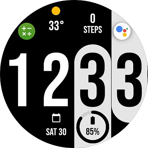 Big bold digital watch face with 30 colors, 6 complications and AOD.