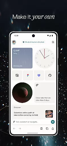The ability to chat with your tabs using voice recognition technology further augments real-time messaging by enabling hands-free operation. This comprehensive approach to communication ensures that Comet remains reliable and fast, meeting the demands of today's mobile users.