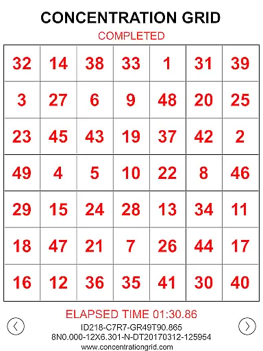 Concentration Grid offers several standout features that enhance its utility for mental skills training. One key aspect is the ability to customize grid sizes, ranging from 3x3 to 14x14, which allows users to tailor the difficulty level to their specific needs. The app tracks performance metrics such as elapsed time and includes a GRID ID dataset that provides detailed insights into user performance. This data-driven approach helps users monitor their improvement over time.